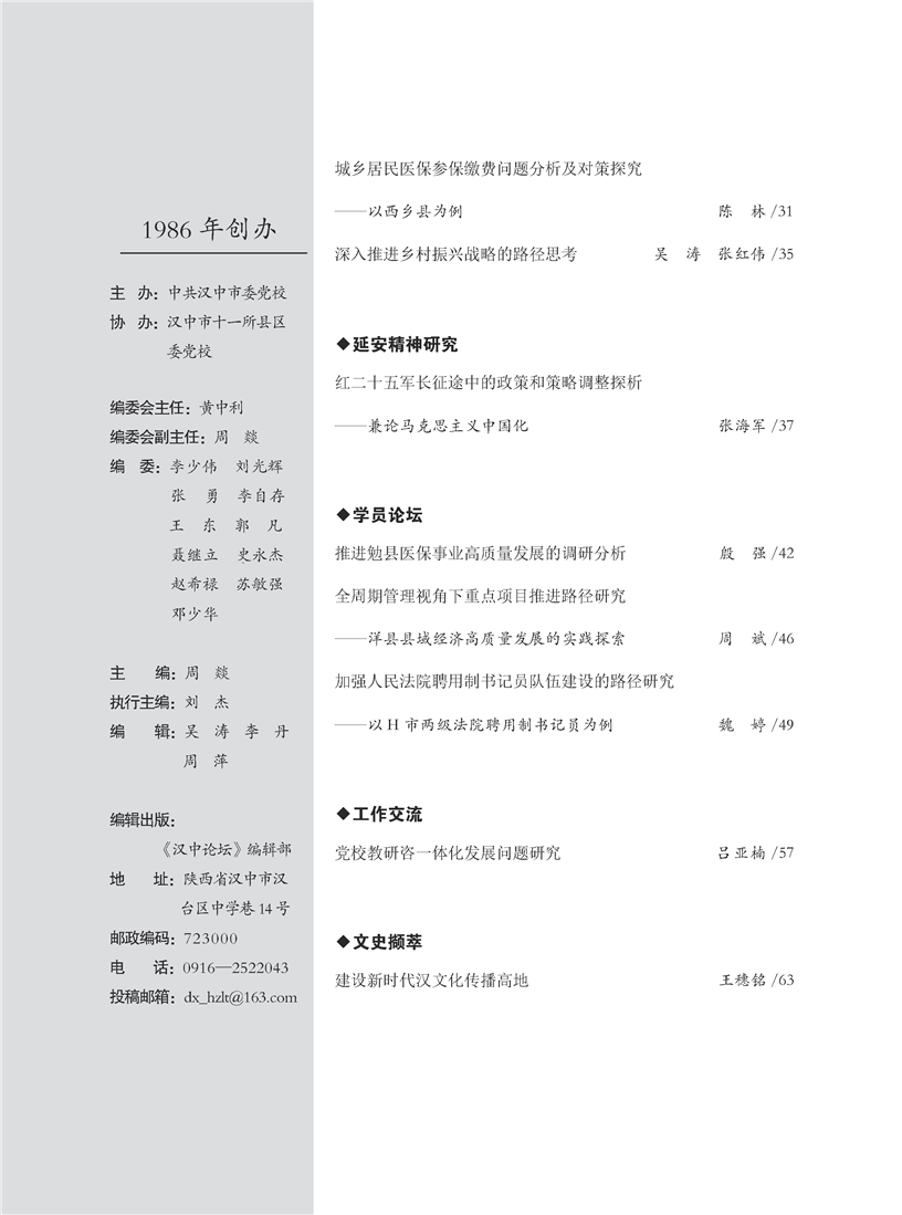 《汉中论坛》2025年第2期目录
