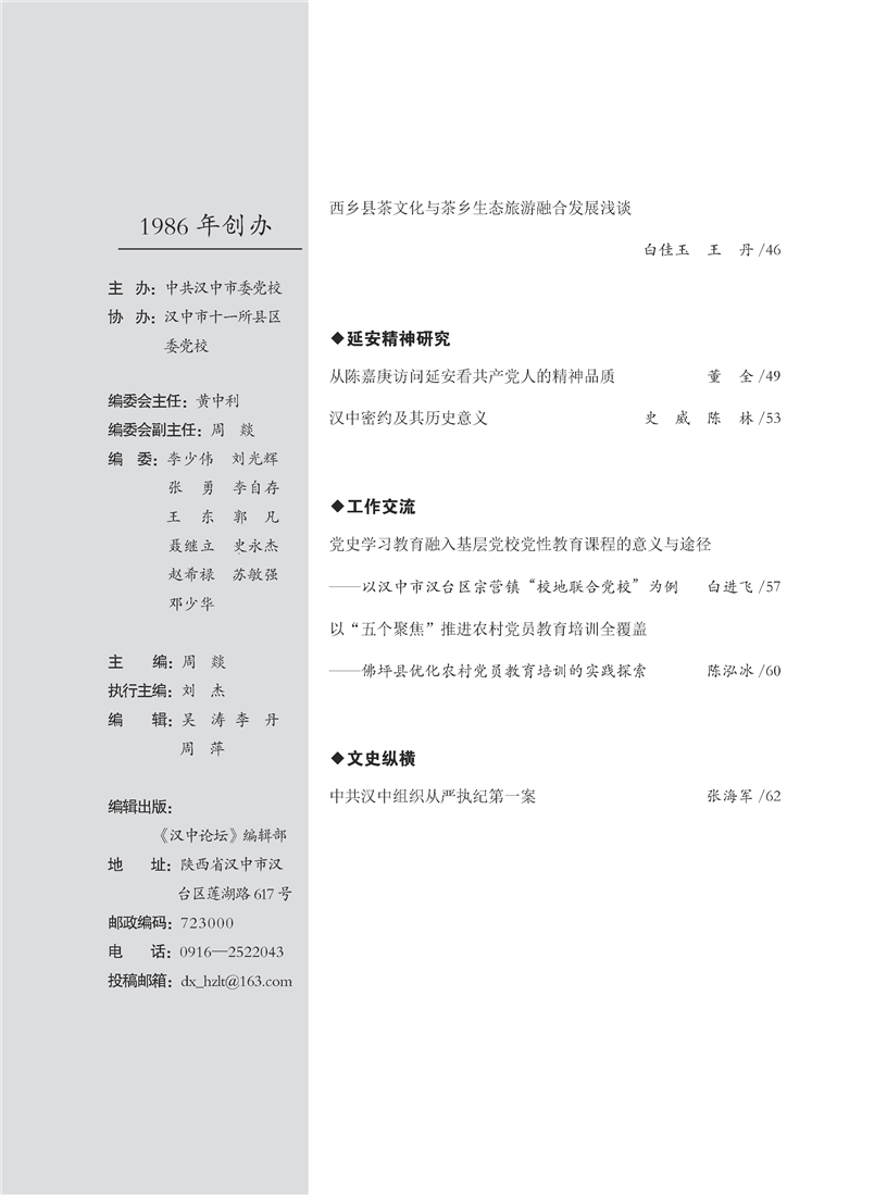 《汉中论坛》2025年第1期目录
